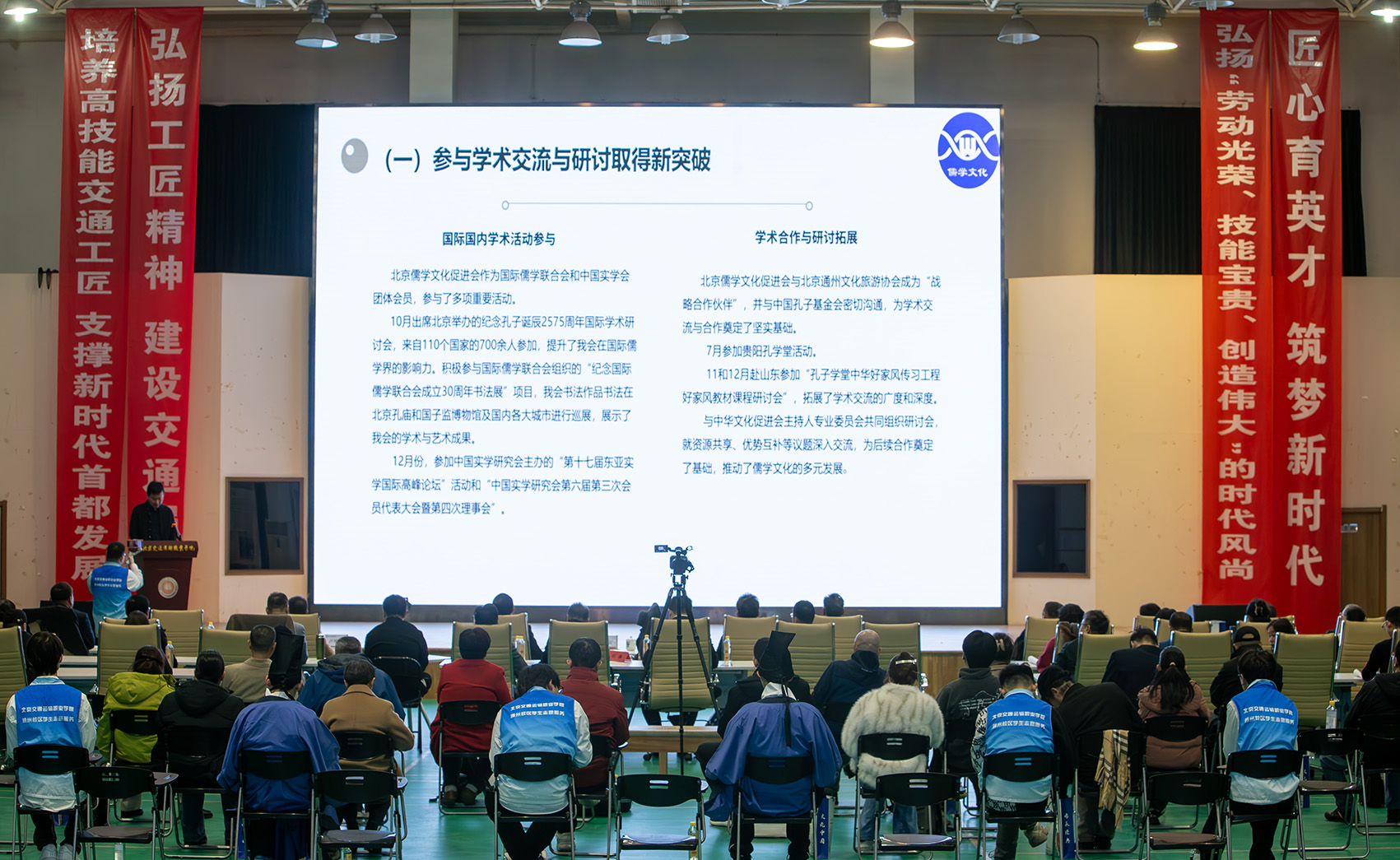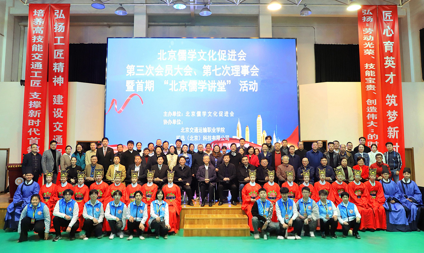 2025年3月16日,春意融融,生机勃发,北京儒学文化促进会首届第三次会员大会暨第七次理事会在北京交通运输职业学院通州梨园校区弘道厅成功举办。本次活动由北京儒学文化促进会精心筹备并主办,北京交通运输职业学院、矿选(北京)科技有限公司、北京非遗传承文化传播有限公司等多家单位协办,来自文化、教育、卫生、科技、企业界的百余名会员及嘉宾共襄盛举。