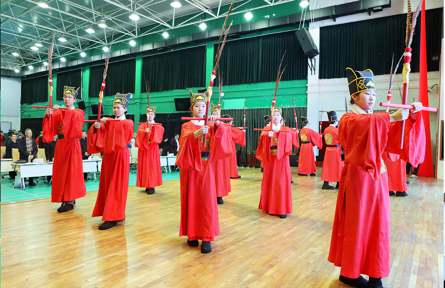上午9时30分,随着庄严的国歌唱响,主持人、副秘书长慕洋洋宣布大会开始。伴随着佾舞展演,全体参会人员礼敬至圣先师孔子,重温入会承诺,誓将肩负起传承儒学精神、弘扬中华优秀传统文化的历史使命。