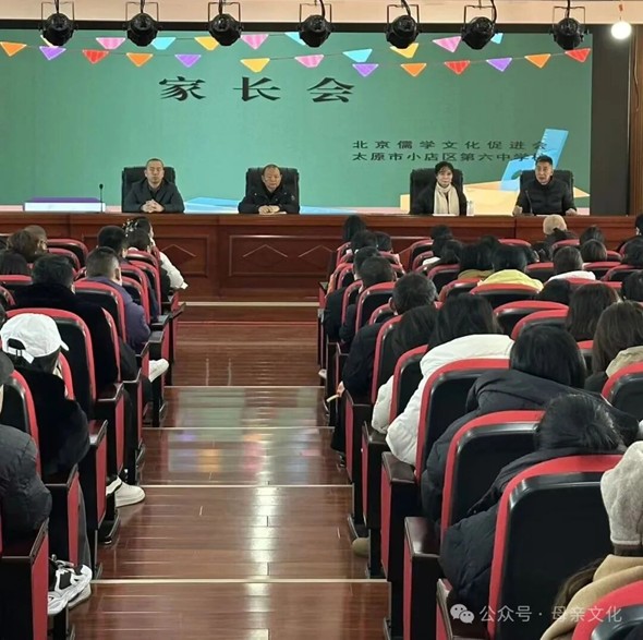 2025年12月3日上午,一场以“母亲文化与现代家庭教育”为主题的公益讲座在太原市小店区第六中学校举行。活动特邀太原市母亲文化研究会会长崔国丽与北京儒学文化促进会副会长卢明宇联袂主讲,吸引了300余名学生家长到场聆听。